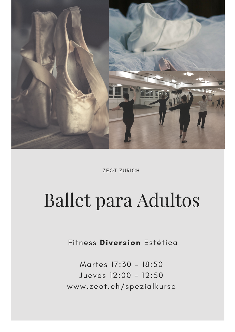 Clases de ballet para adultos en Zurich se imparten en alemán e inglés. Las clases son ideales para aquellas personas que han deseado experimentar clases de ballet o que desean empezar a entrenar nuevamente. Es posible visitar siempre una lección de prueba con o sin previo aviso.